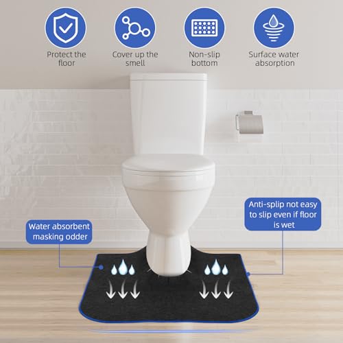 ADJUSTABLE INNER RING DESIGN: Our Potty Training Mats are designed with an adjustable inner rim for a better fit around the rim of the toilet. It can be applied to different models of toilets and can protect the floor.SOFT BOTTOM: Our potty floor mats adopt a soft bottom design. These mats will firmly attach to the ground like geckos after you put them on the ground. There is no need to worry about sliding accidents no matter whether the washroom is wet or not, other mats with hard bottom are easy to cause slip accidents if the washroom is wetPROTECT FLOOR: These toilet training mats can keep the air of bathroom fresh. they can protect floor from stains. They can effectively reduce the cost of restroom's maintenance. They can effectively help maintain a beautiful environment in the washroomENVIRONMENTALLY FRIENDLY AND REUSABLE: Our mat's bottom is made of natural rubber and the surface absorbent layer is made of reusable material, and the product has passed the SGS certification testUPGRADE VERSION: We lengthened the part of the mat for people standing, it can protects the floor better than competitors. We upgrade the package of the product, all items come to you crease free.