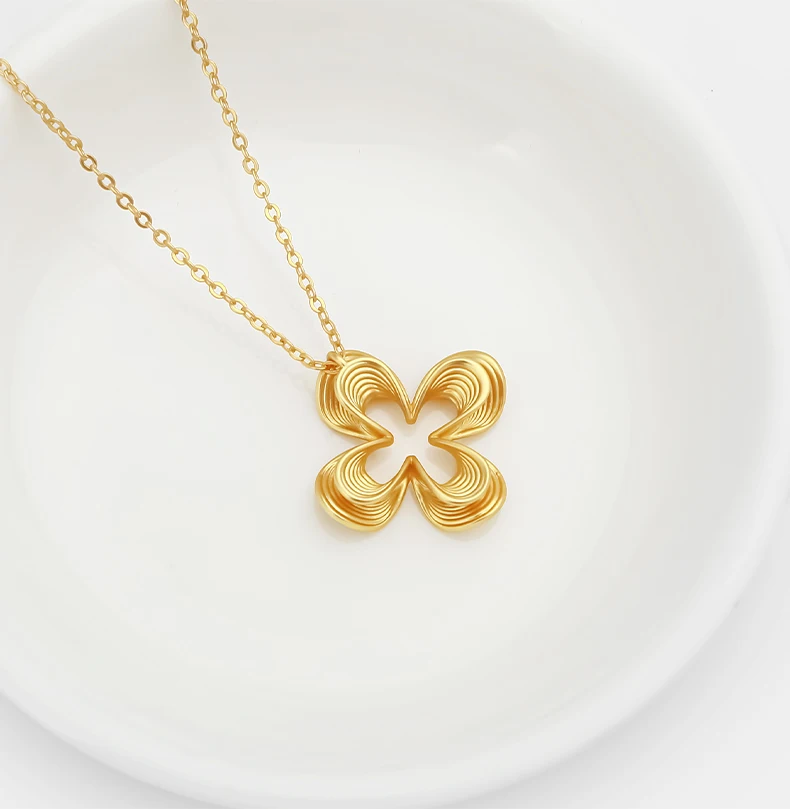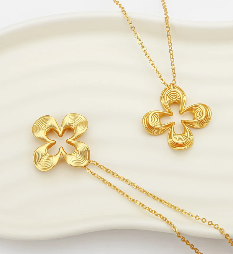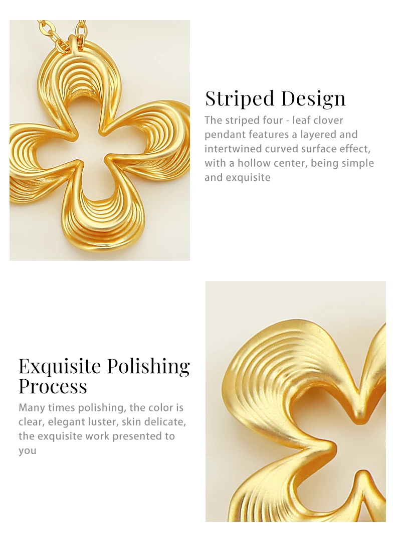 VAROLE Women's Four Leaf Clover Necklace European American Style Unique Striped Cross Petal Design Fashion Jewelry Gift