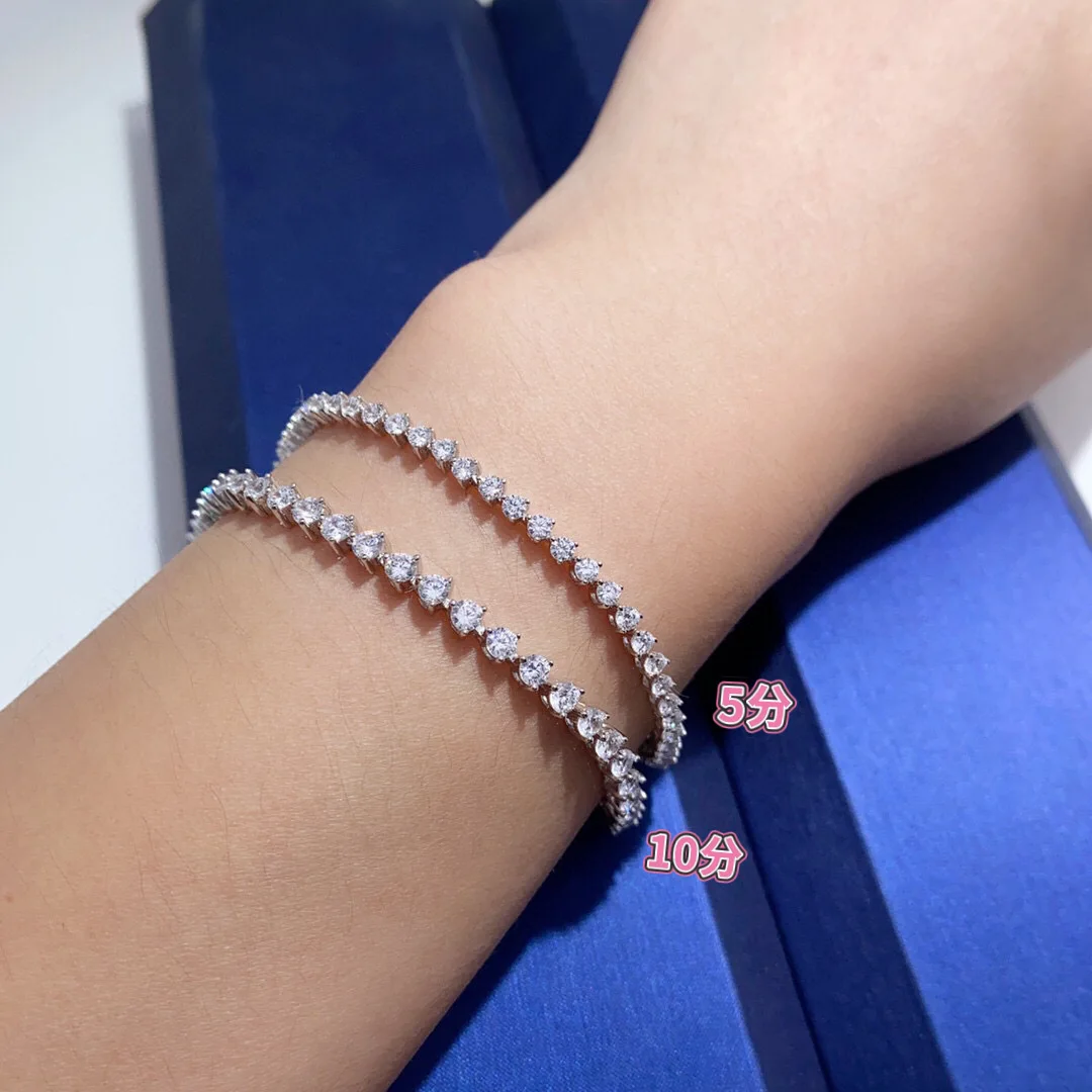 Versatile Fashion Three-Prong Round 5pt Moissanite PT950 Platinum Bracelet Unisex - Platinum Chain + Stone, Fine Craft