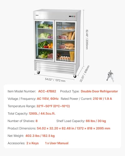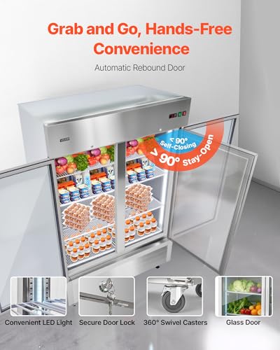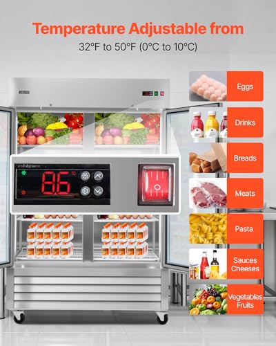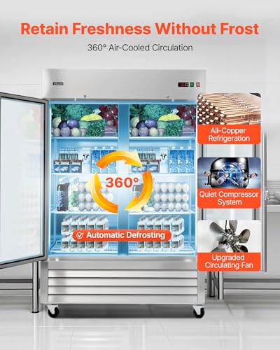 Efficient Cooling: This commercial refrigerator combines high-performance cooling with digital temperature display to keep food fresh while saving energy. With a 32℉ to 50℉ (0℃ to 10℃) range and smart digital control, it easily adapts to diverse storage needsFrost-Free Air Cooling: Our commercial kitchen equipment integrates frost-free air cooling with an automatic water evaporation system, avoiding ice buildup and reducing energy use. It ensures fresh ingredients and efficient long-term storageLarge Storage Capacity: Designed for bulk food storage, this commercial reach-in refrigerator offers a 44 Cu.Ft capacity with 8 adjustable shelves. Each layer supports 66 lbs (30 kg) heavy loads, keeping ingredients organized and easy to accessDurable Construction: Built from corrosion-resistant stainless steel, this commercial upright refrigerator is durable, stylish, and easy to clean. Four casters allow flexible movement, while LED lighting improves nighttime visibilityWide Application: Whether in restaurants, shops, or homes, this upright refrigerator fits various needs. Ideal for kitchens, garages, and storage rooms, it provides a reliable solution for keeping food fresh in various settings