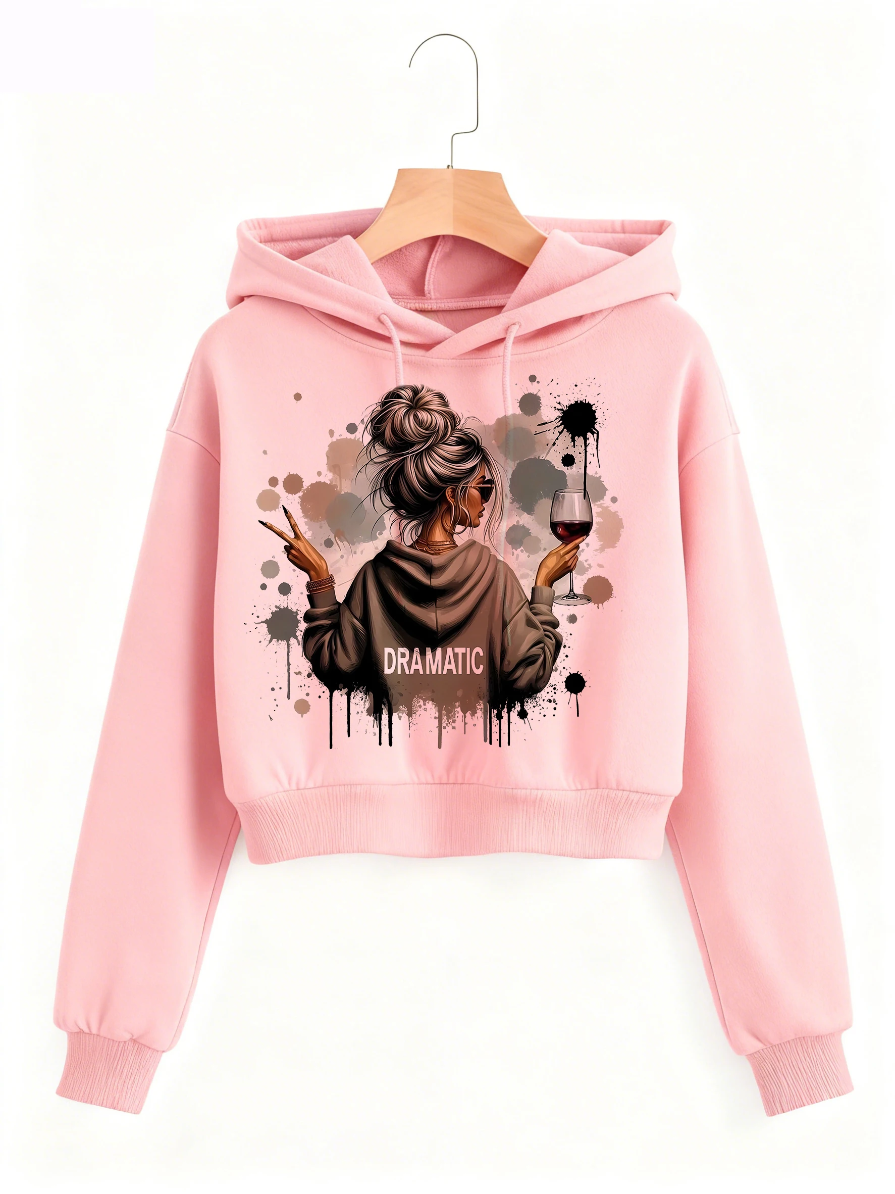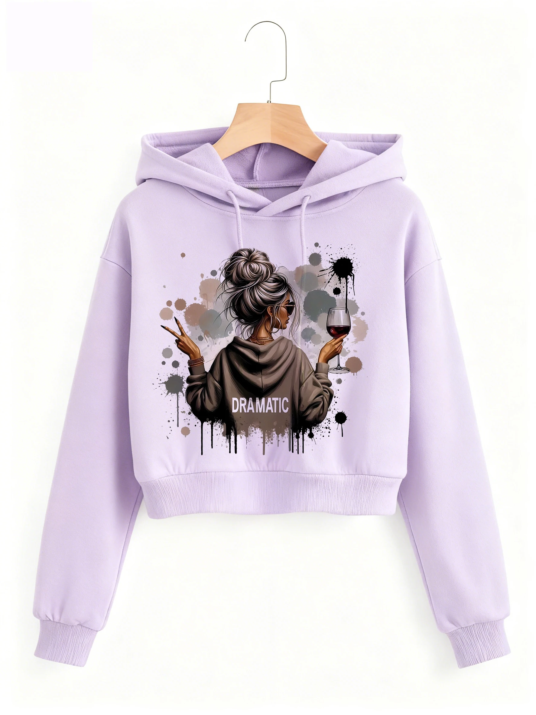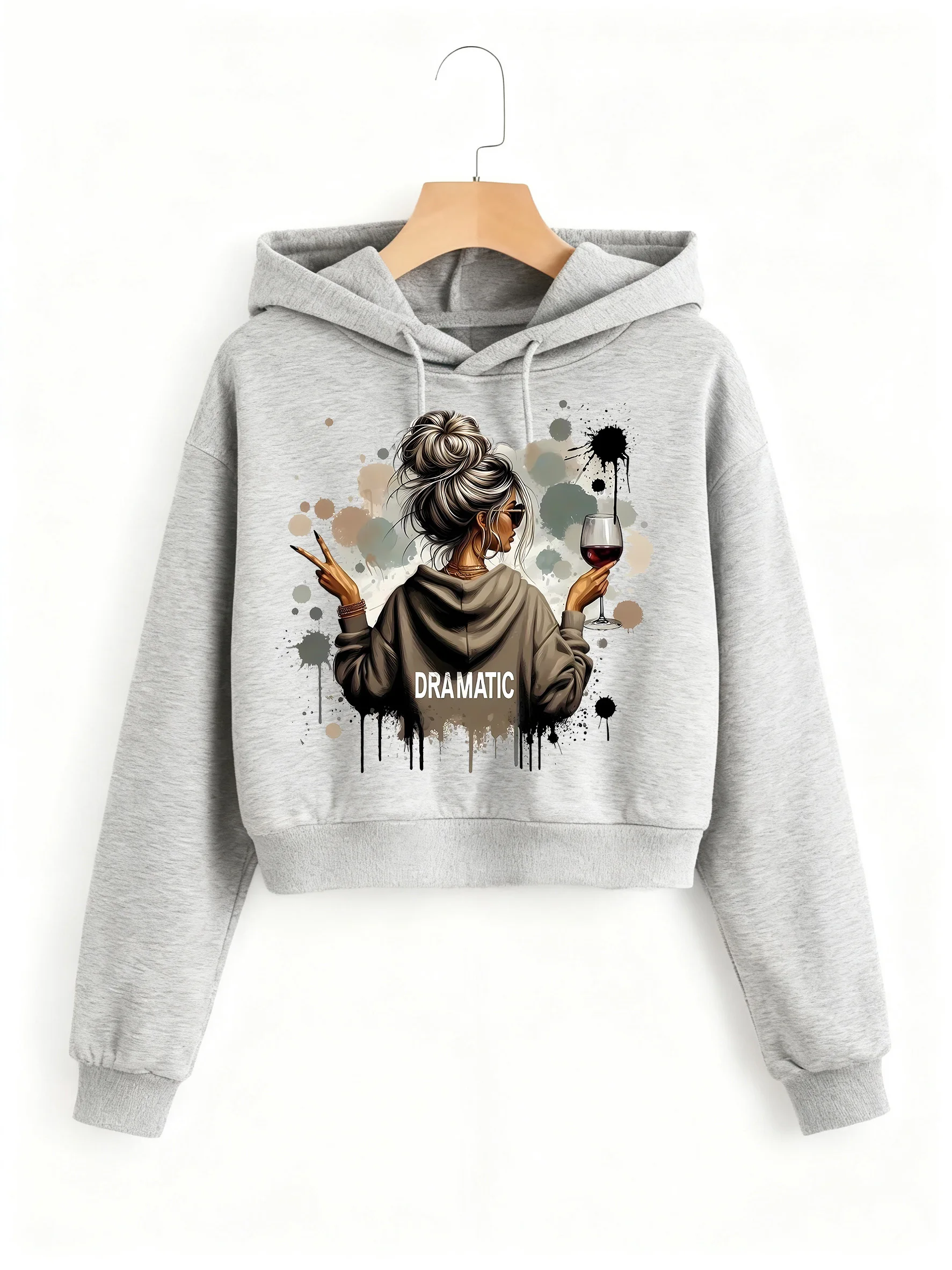 Vintage Dramatic Lady Print Autumn Winter Cropped Sweatshirt Crop Top Hoodie Y2k Sweatshirts Gothic Casual Style Clothes
