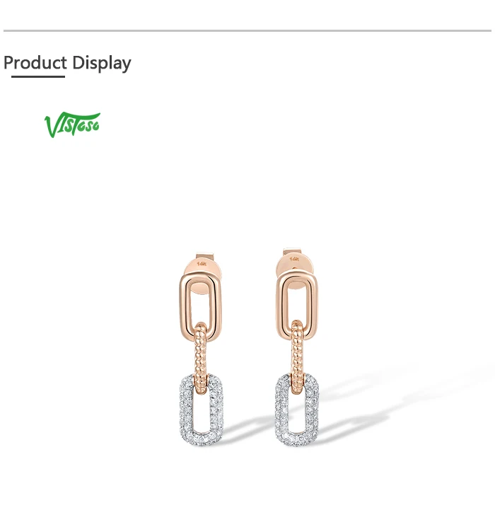 VISTOSO 14K 585 Rose Gold Stud Earrings For Women Sparkling Genuine Diamonds Dangling Chain Link Geometric Fine Fashion Jewelry