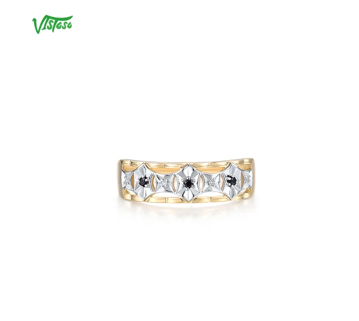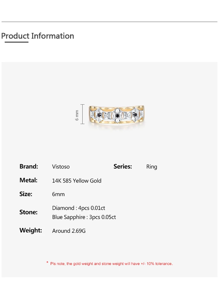VISTOSO Pure 14K 585 Rose White Gold Ring For Women Sparkling Diamond Sapphire Classic Delicate Party Gifts Fashion Fine Jewelry