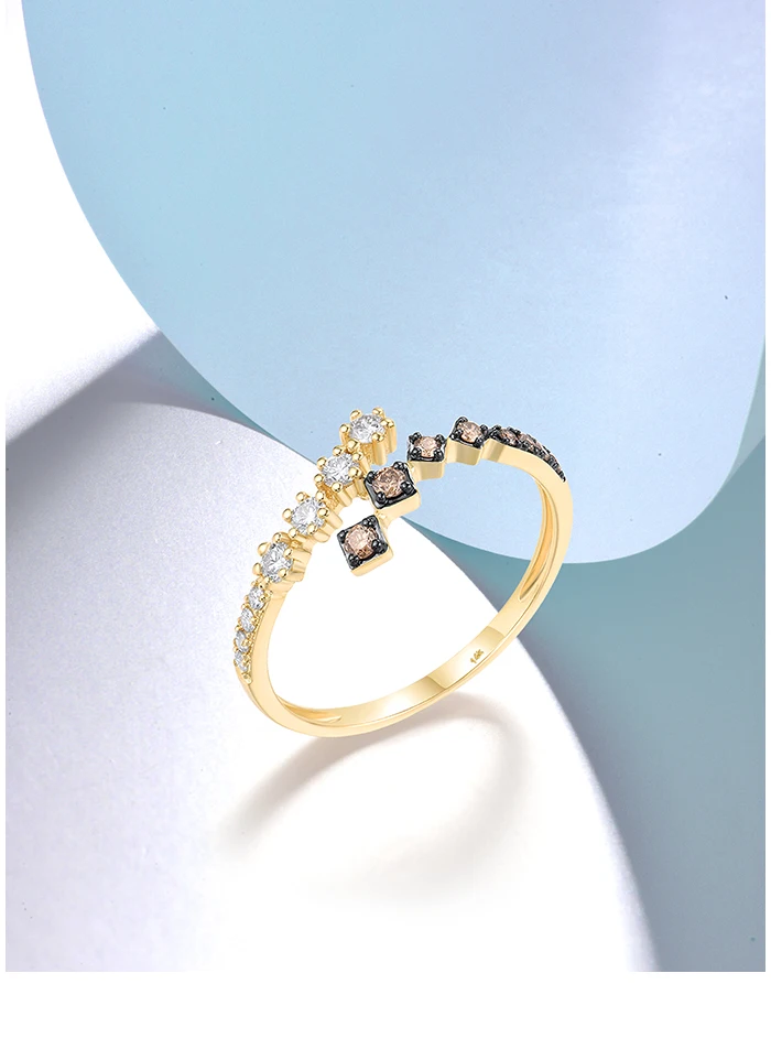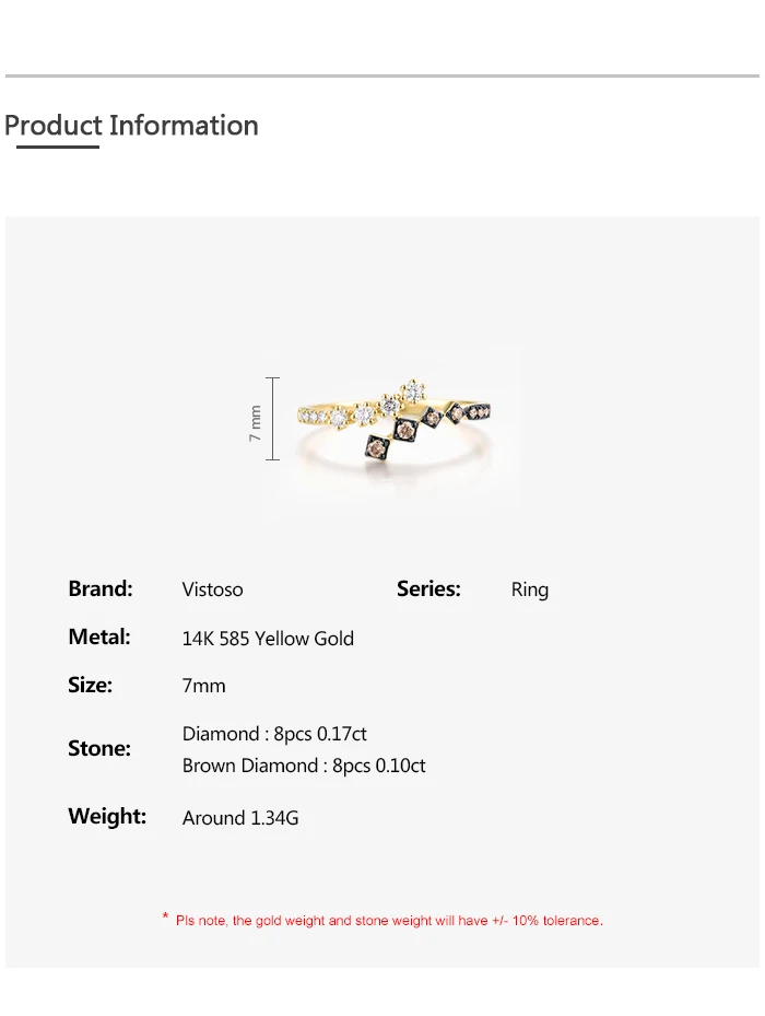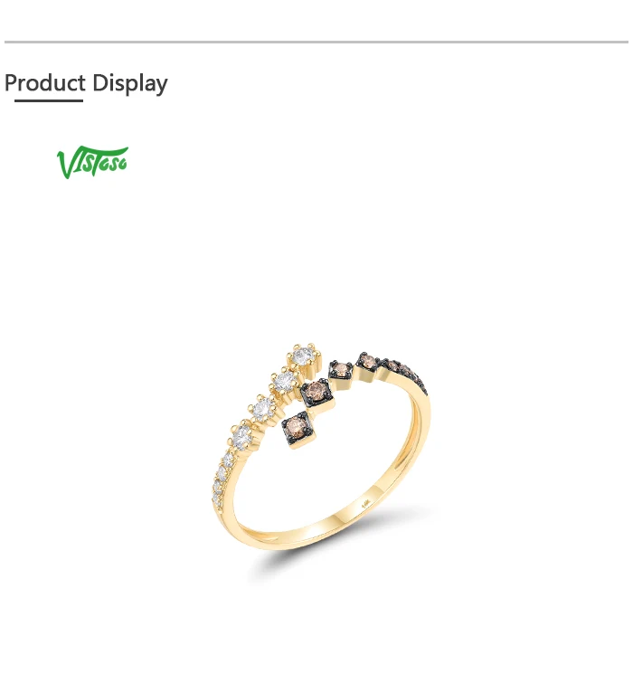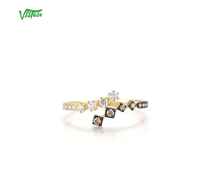 VISTOSO Real 14K 585 Yellow Gold Ring For Women Sparkling White& Brown Diamonds Fashion Wedding Engagement Band Fine Jewelry