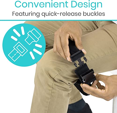SAFELY MOVE & REPOSITION YOUR LEGS: Ideal for those with weakness or paralysis in the legs, following knee or hip surgery and injury, the Vive thigh lifter strap set includes two straps that aid lifting and repositioning the legs. The thigh lifter straps work to safely position the legs in bed, in a vehicle as well as moving to and from a transfer bench, wheelchair or scooter.EASY-TO-USE DESIGN: Featuring quick-release buckles, the thigh lifting straps open up completely, making them easy to put on and take off. A small fabric flap protects the skin from the buckle, reducing irritation. The straps handles are also generously sized for use with one or both hands, or use your forearm to create greater leverage.ADJUSTS TO FIT MOST ADULTS: Extending to fit a thigh circumference up to 30”, the Vive thigh lifter strap set is easily adjustable with a strong fastener system to provide a custom fit for most adults. Excess strap lengths can also be trimmed if desired.COMFORTABLY PADDED: Made with a breathable blend of polyester and foam, the latex-free thigh lifting straps are soft to provide maximum comfort and reduce friction and irritation and durable to withstand frequent use.VIVE GUARANTEE: 60 day guarantee so you can purchase now with confidence.