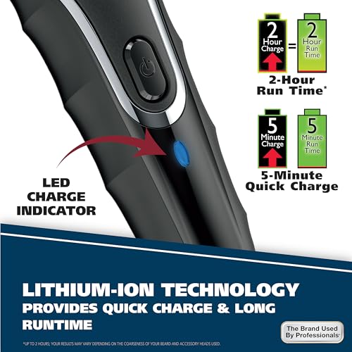 Versatile Wet / Dry Use – Washable showerproof design with our patented low noise extreme precision self-sharpening blades provide an ultra-close superior cutting experience for all hair & beard lengths without sacrificing cutting power or speedComplete Grooming System - 3 Different multipurpose attachments are perfect for all facial hair styles: Extreme Precision T-Blade, Rotary Personal Trimmer, & Detail TrimmerLong-Lasting Battery – Lithium Ion power lasts for years & allows for months of use between charges, quick charge allows for 5 minutes of trimming from only a 3-minute chargeWorldwide Voltage – This trimmer can be used anywhere, whether domestically with 110v or internationally with 220v; our long-lasting rechargeable battery makes this trimmer the perfect choice for travel, home use, or business tripsThe Brand Used by Professionals – For over 100 years, Wahl hair clippers and beard trimmers have been used by professionals in the barbering and salon industry producing above standard premium quality.