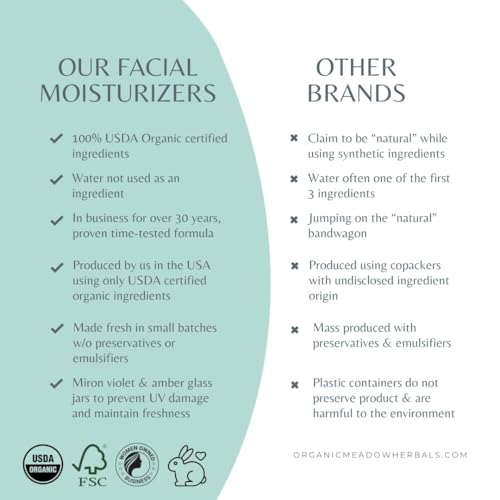 Fine lines, Puffy Eyes Treatment: Defend against fine lines, wrinkles, puffiness, and signs of aging with the daily use of Indian Meadow Herbal’s firming eye cream. Made with organic ingredients, this hydrating eye cream protects mature, dry, and sensitive skin.High Antioxidants, Anthocyanins: Harness the power of anthocyanin with this wild blueberry anti-aging eye cream. Our non-GMO under-eye cream for dark circles and puffiness helps combat signs of aging around the delicate eye area.The "Miron Violet Glass" container selected for this product prolongs shelf life and enhances the quality of natural products. The unique properties of Miron glass packaging have been scientifically proven to protect the quality of natural products by filtering different light frequencies. This glass is made of a special type of violet-tinted glass that blocks visible light from reaching the contents, which helps preserve the product's therapeutic properties.USDA Certified Organic assures the highest level of fully traceable organic ingredients. Manufactured completely in our USDA-certified facility. Every ingredient complies with the stringent USDA Organic standards.Directions to Use: Apply a small amount of our puffy eye cream for wrinkles and gently dot under your eye toward your nose, avoiding contact with your eyes. A little goes a long way! Packaged in deep violet glass to protect from heat and light degradation.