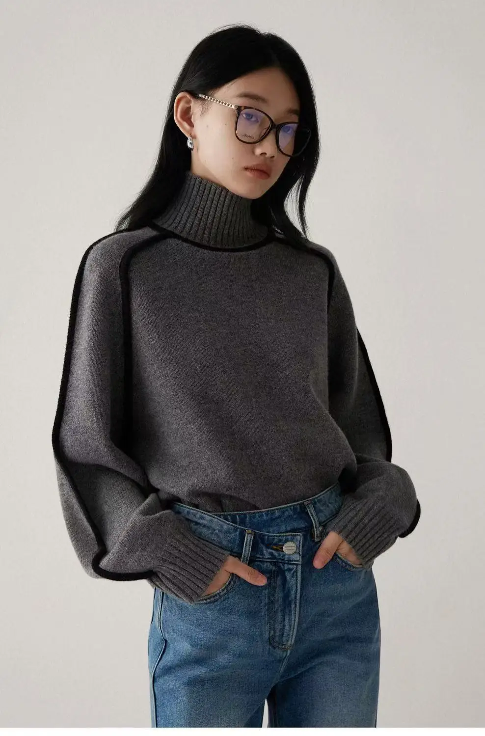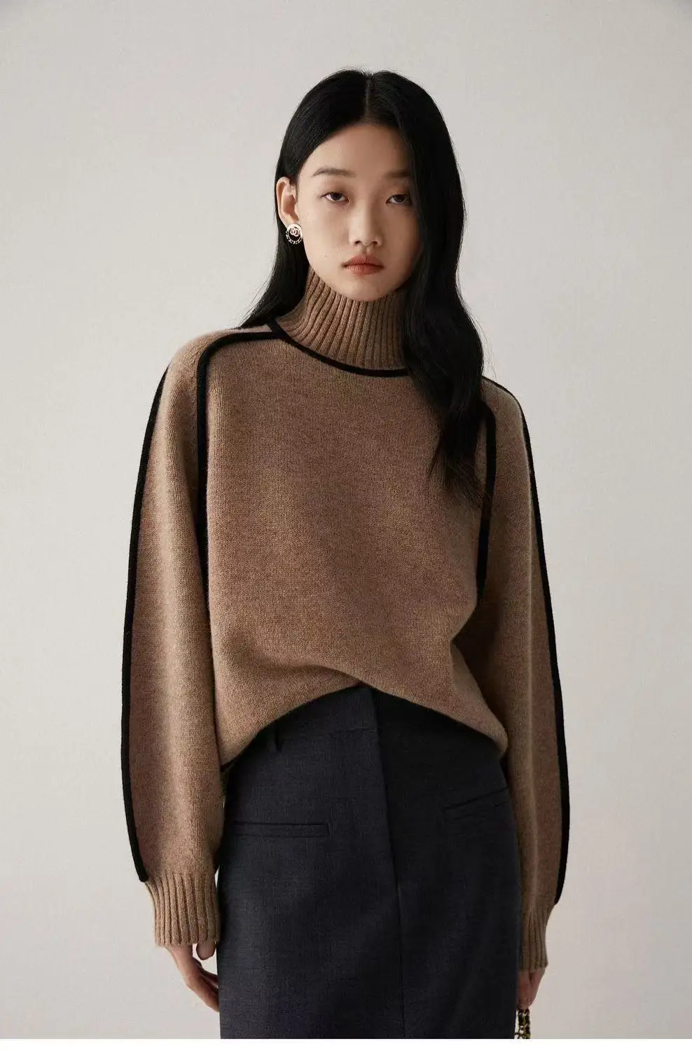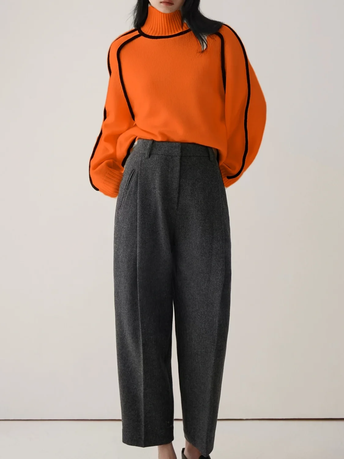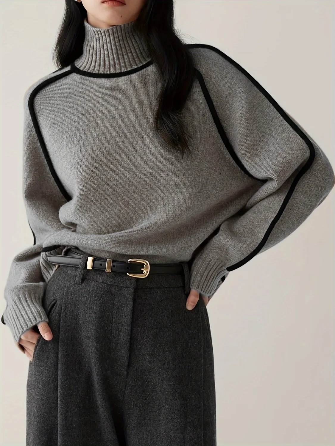 Winter High Neck Raglan Lantern Sleeve Women's French-Inspired Design Soft Loose-Fit Warm Knit Top
