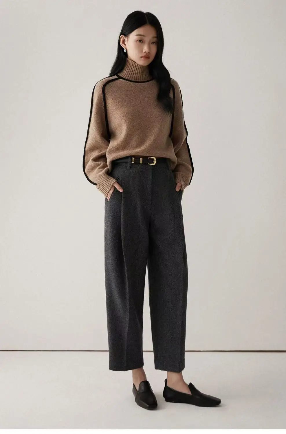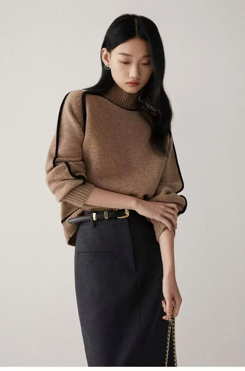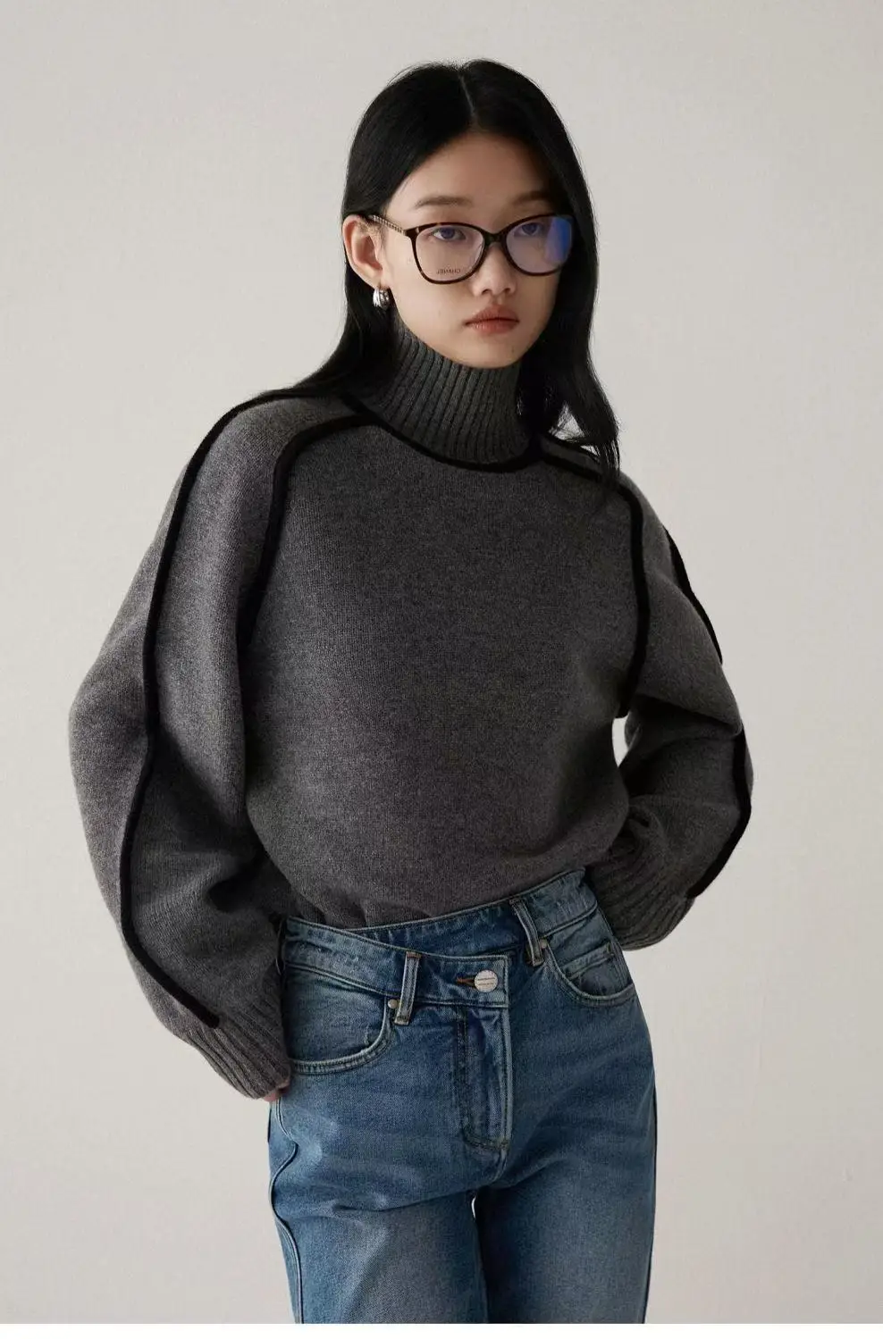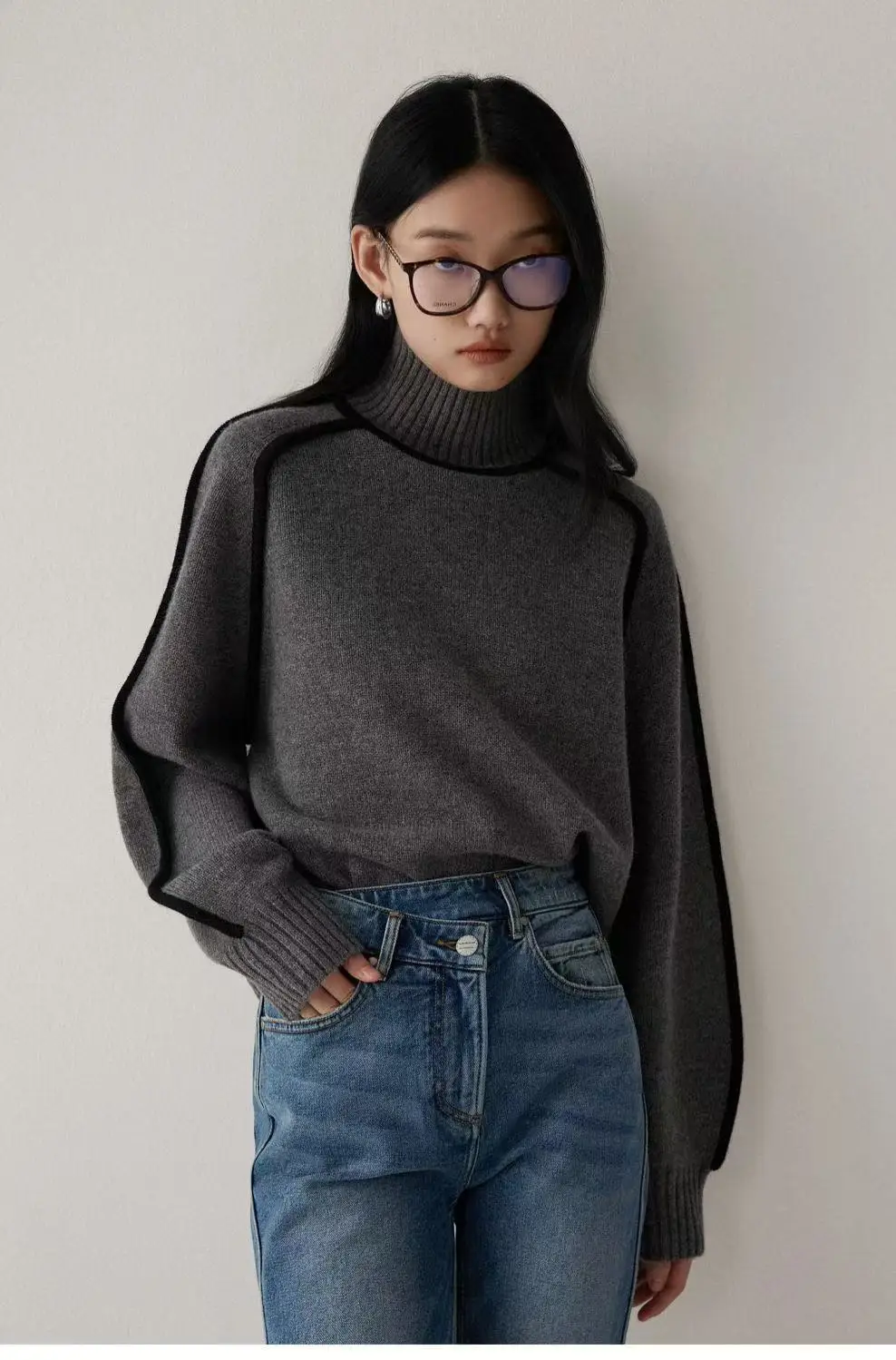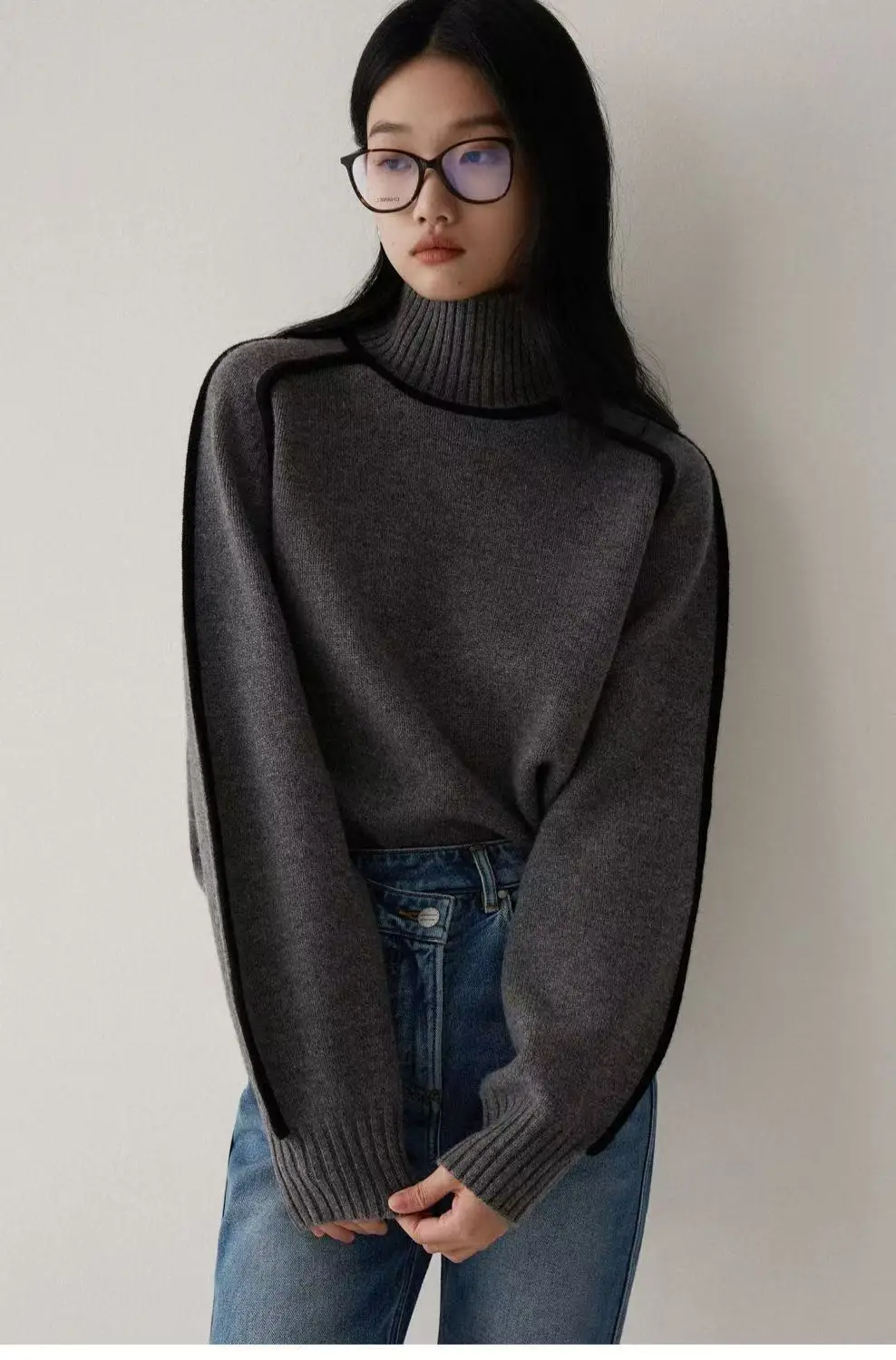 Winter High Neck Raglan Lantern Sleeve Women's French-Inspired Design Soft Loose-Fit Warm Knit Top