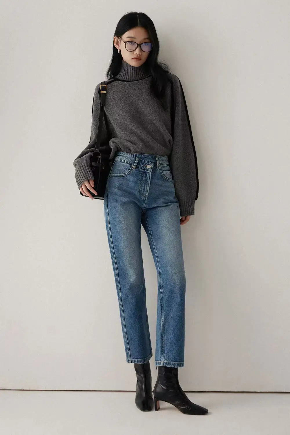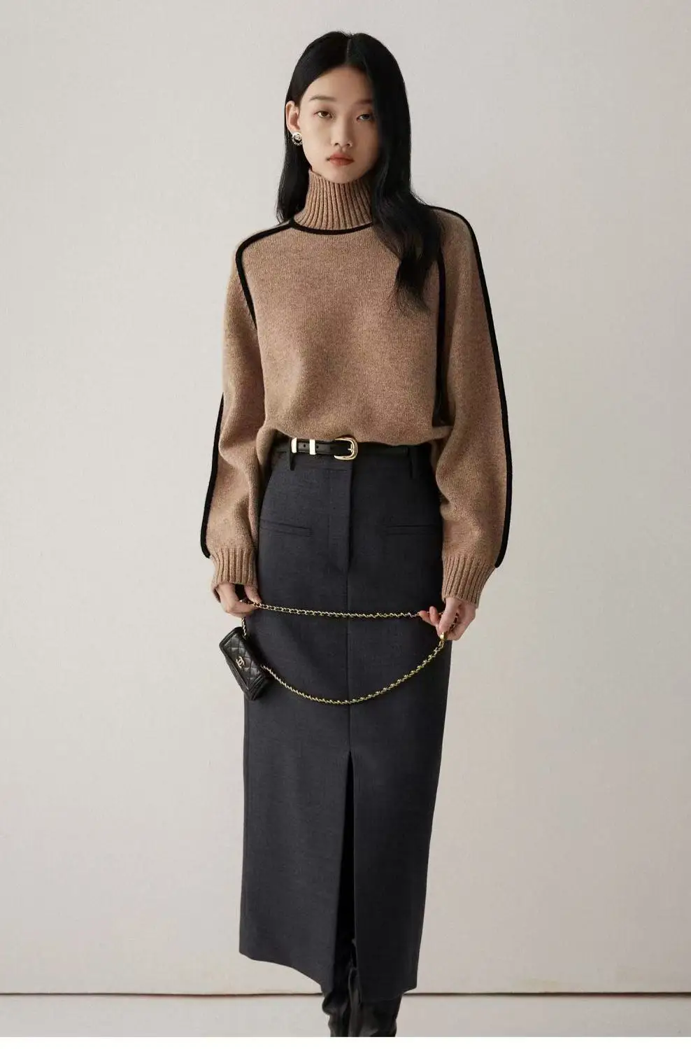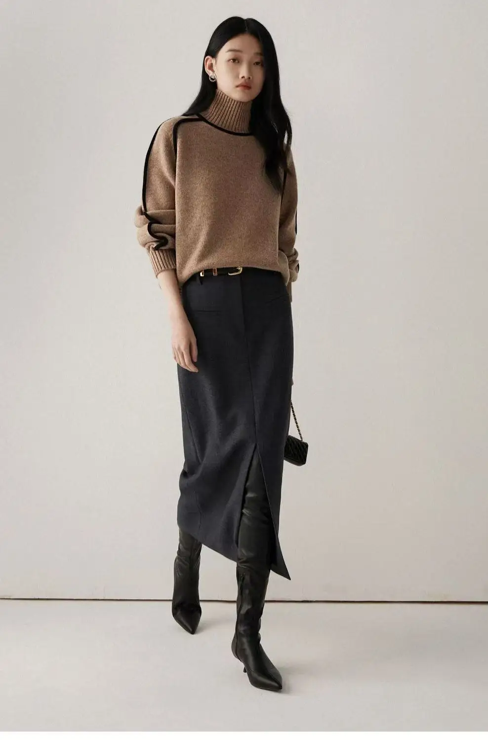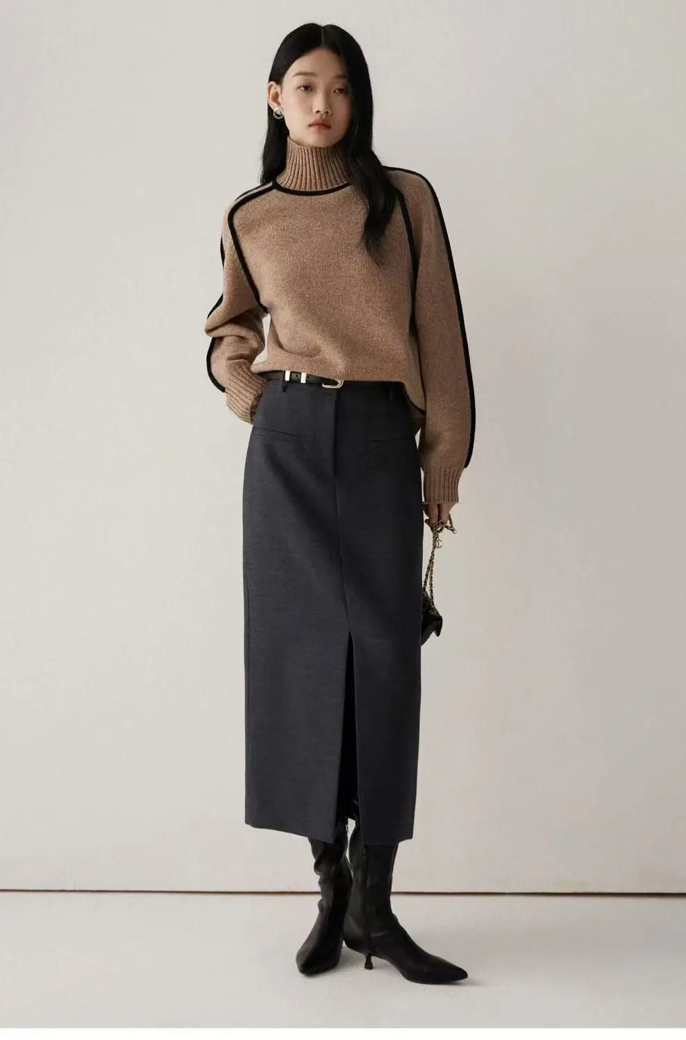 Winter High Neck Raglan Lantern Sleeve Women's French-Inspired Design Soft Loose-Fit Warm Knit Top