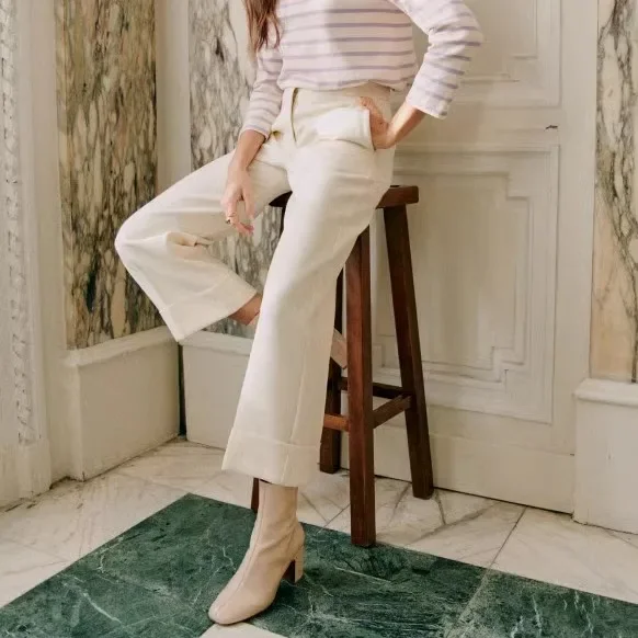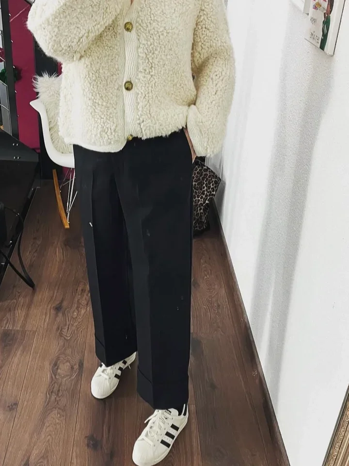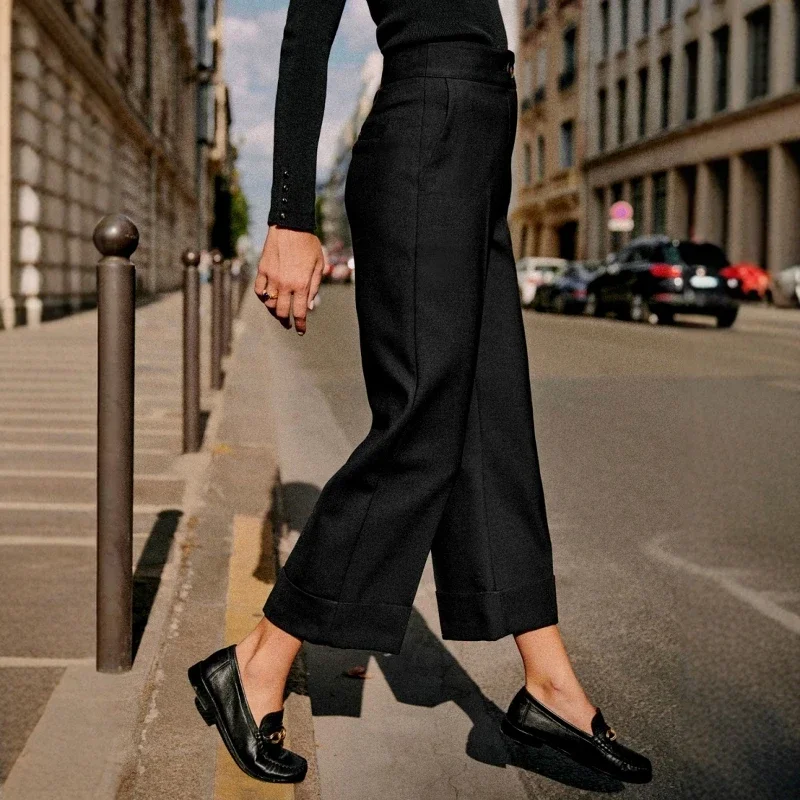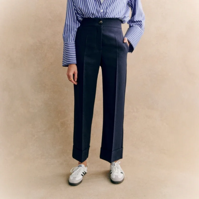Women 2025 Spring and Summer New High-waisted Versatile Casual Straight-leg Trousers Rolled-up Nine-point Pants