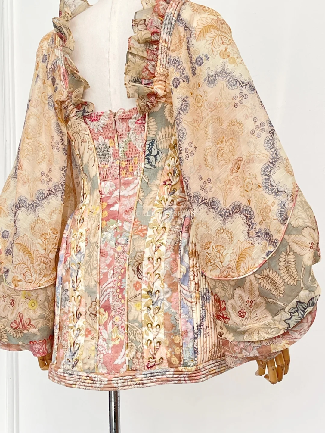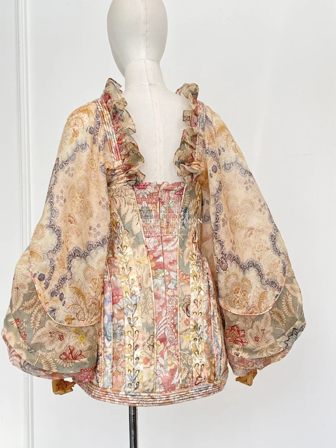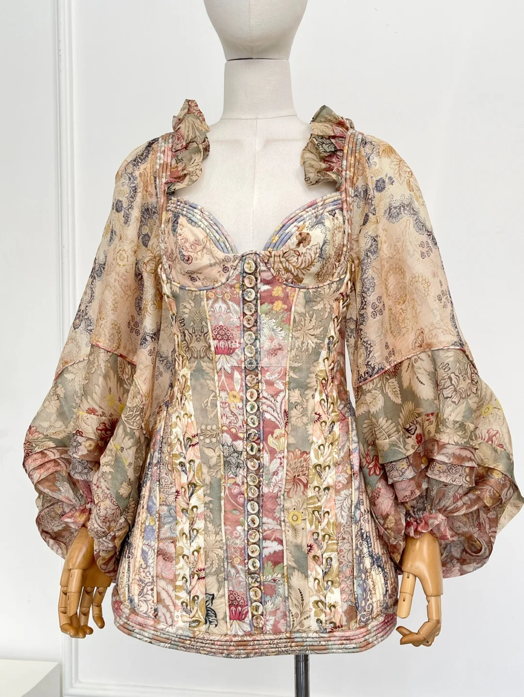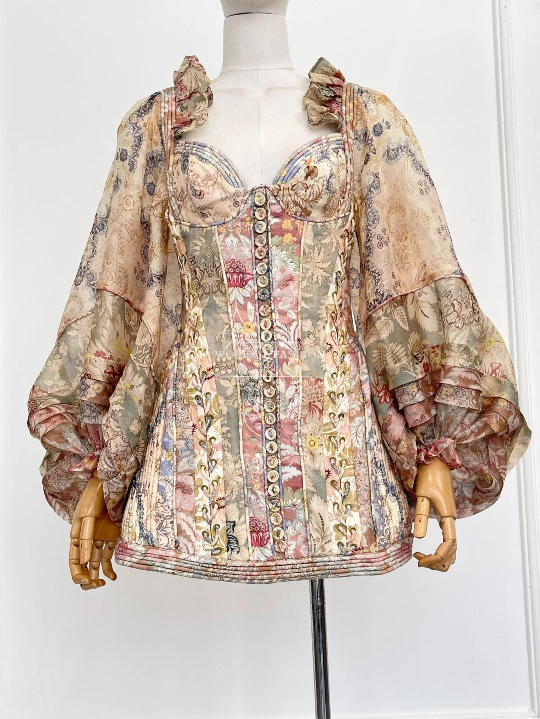Women Dress 2026 Autumn New High Qaulity Floral Pink Brown Floral Print Long Lantern Sleeve Backless Mini Dresses