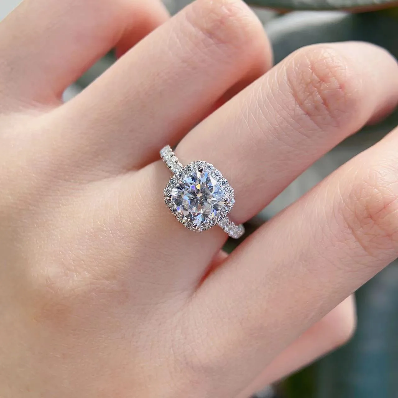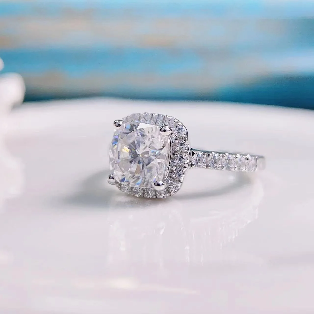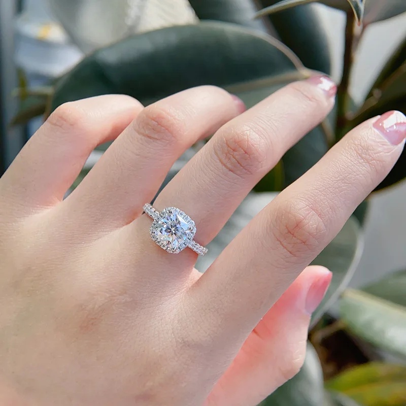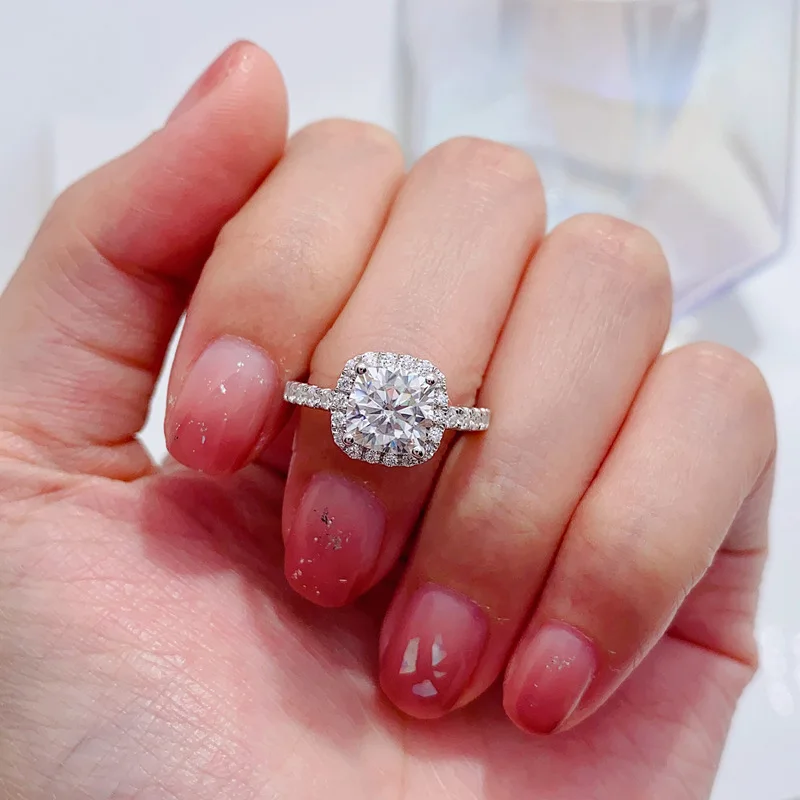Women Fashion Cushion-Cut Diamond Ring 1ct Moissanite Ring PT950 Platinum - Unique Design, Dazzling Stone, Platinum Style
