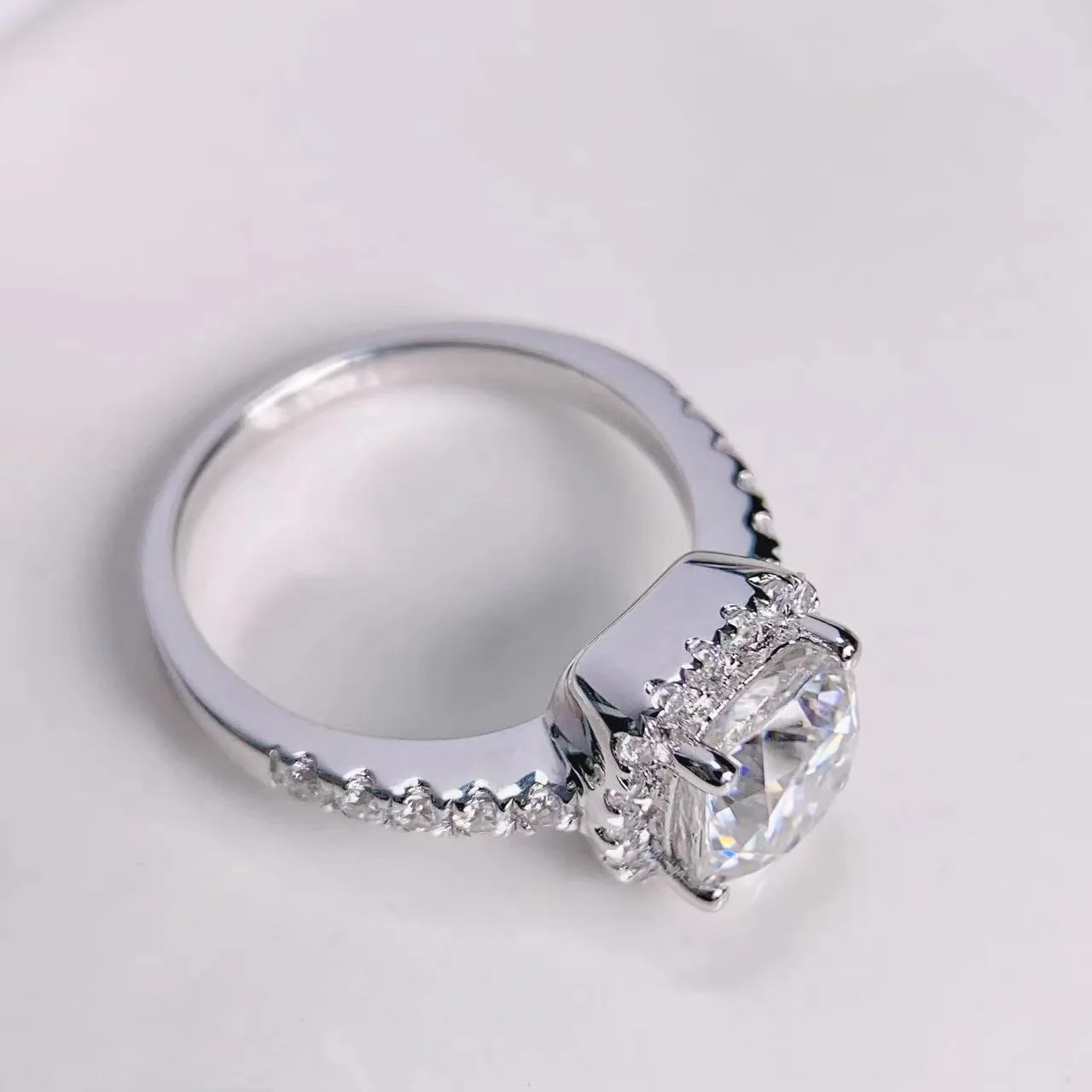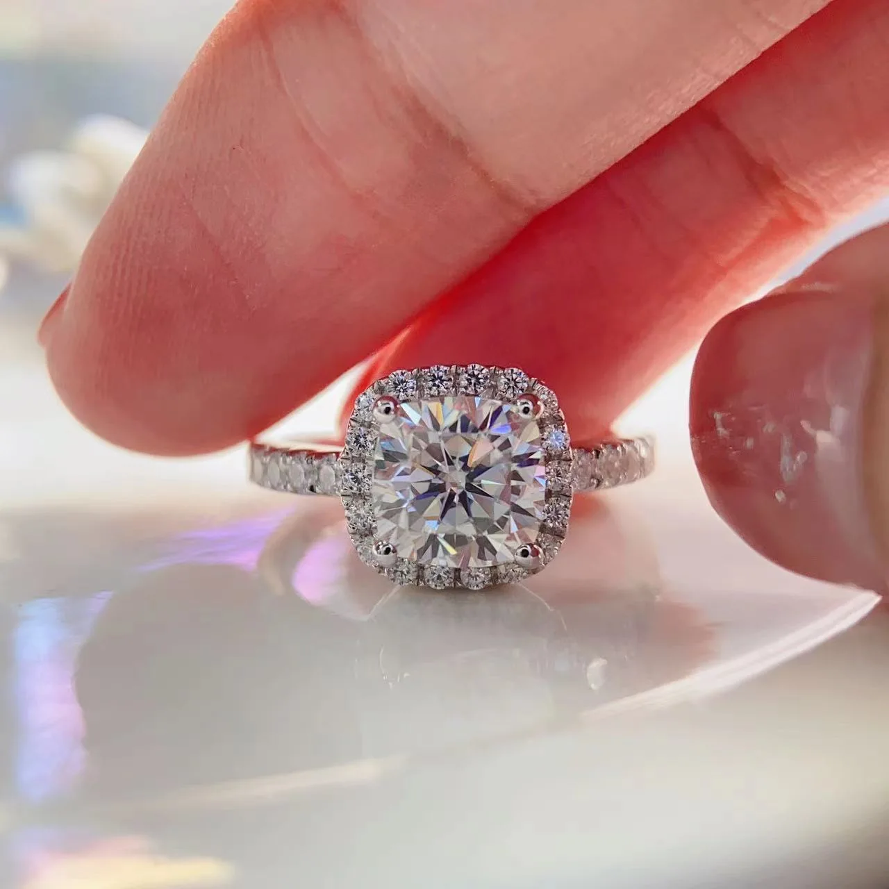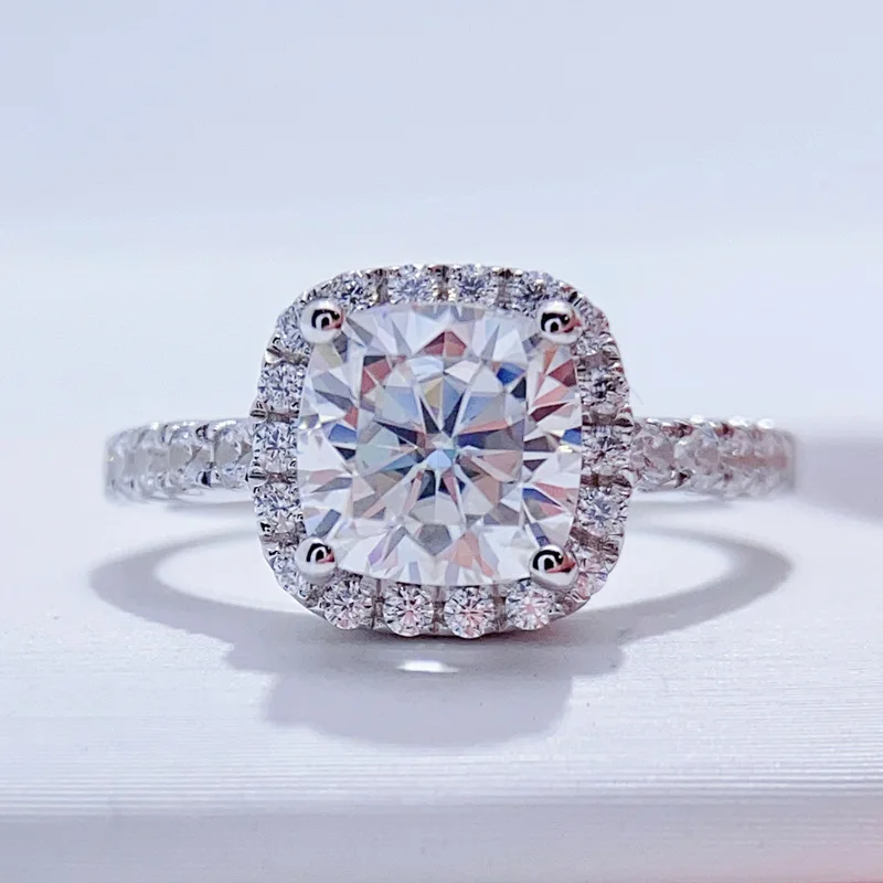 Women Fashion Cushion-Cut Diamond Ring 1ct Moissanite Ring PT950 Platinum - Unique Design, Dazzling Stone, Platinum Style
