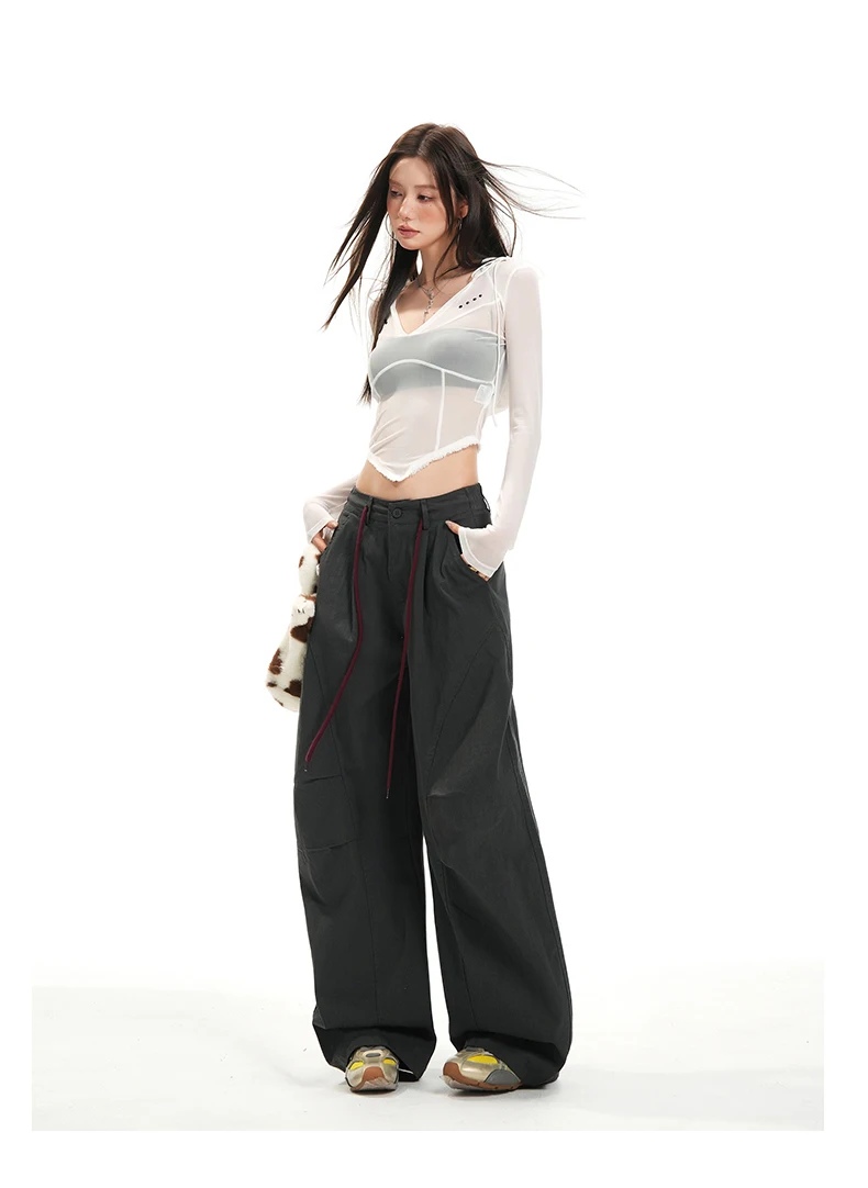 Women Pants Solid Casual Slim Straight Leg Wide Leg Ladies Trousers Spring Autumn 2025 Clothing for Woman