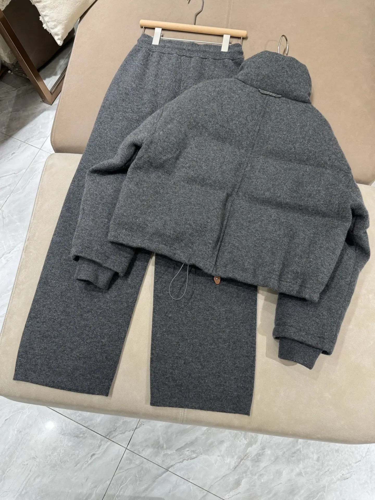 Women's 2-Piece Set Autumn Winter Stand Collar Long Sleeve Jacket + High Waist Straight Wide Leg Pants Warm Suits