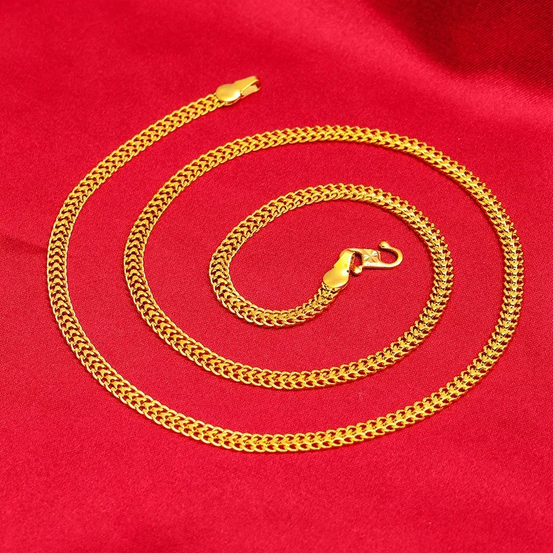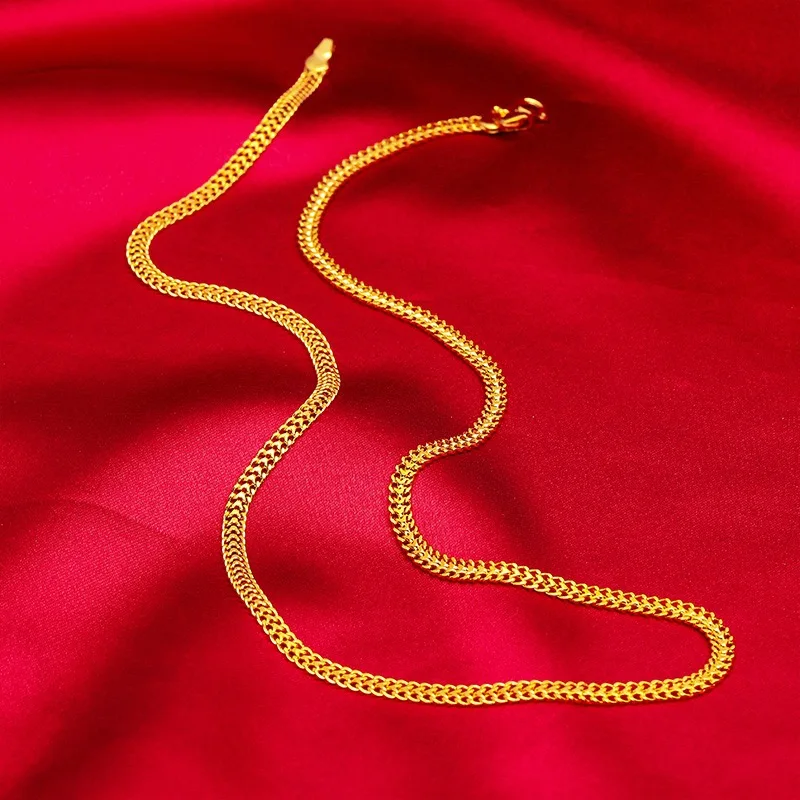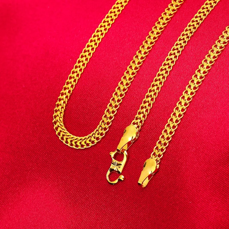 Women's 9999 24K real gold fried dough twist chain gold necklace fashion Fried Dough Twists gold jewelry necklace