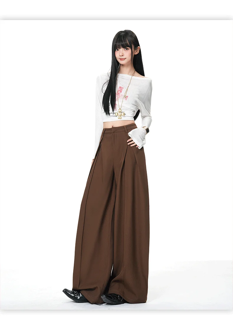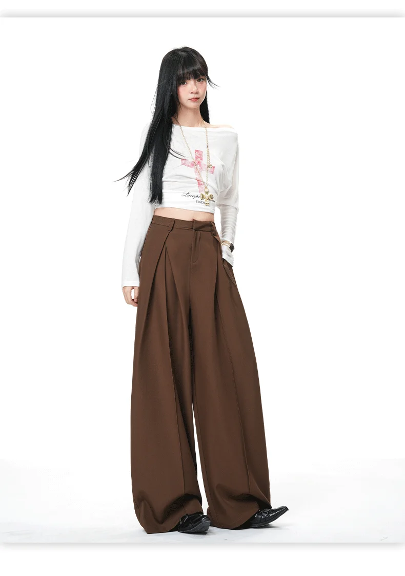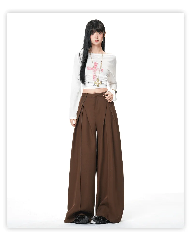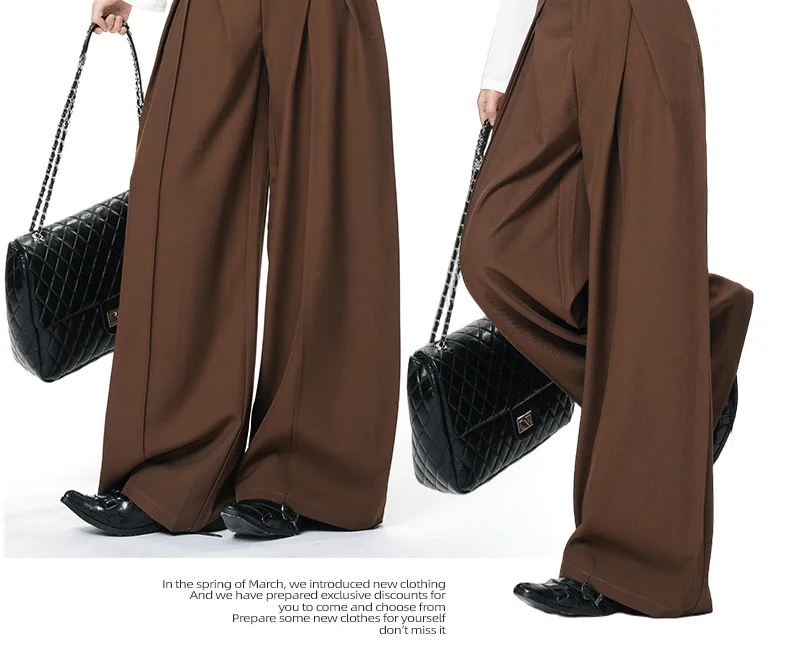 Women's Elegant Jacquard Pleating Wide-Leg Pants Office/Commuting Solid Color Loose Casual Suit Pants