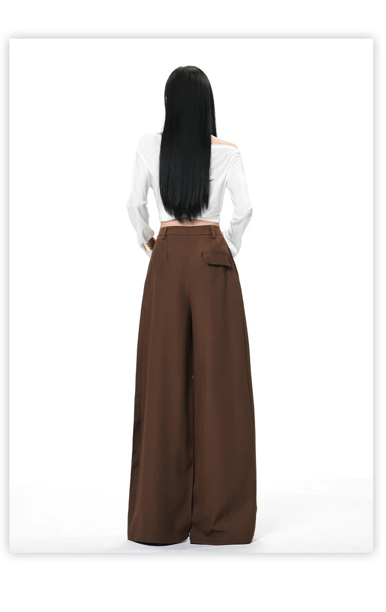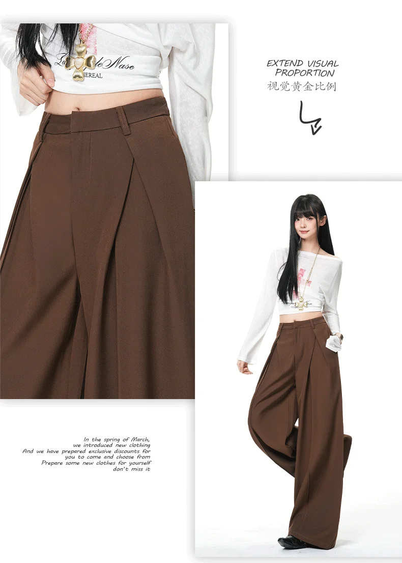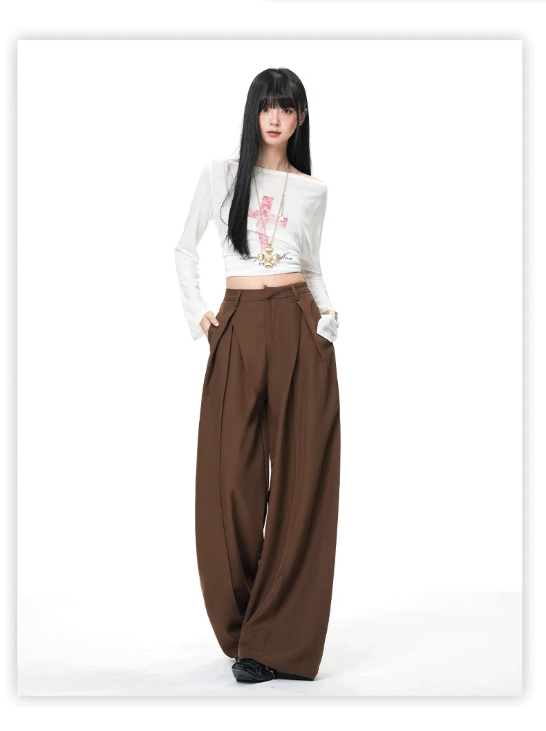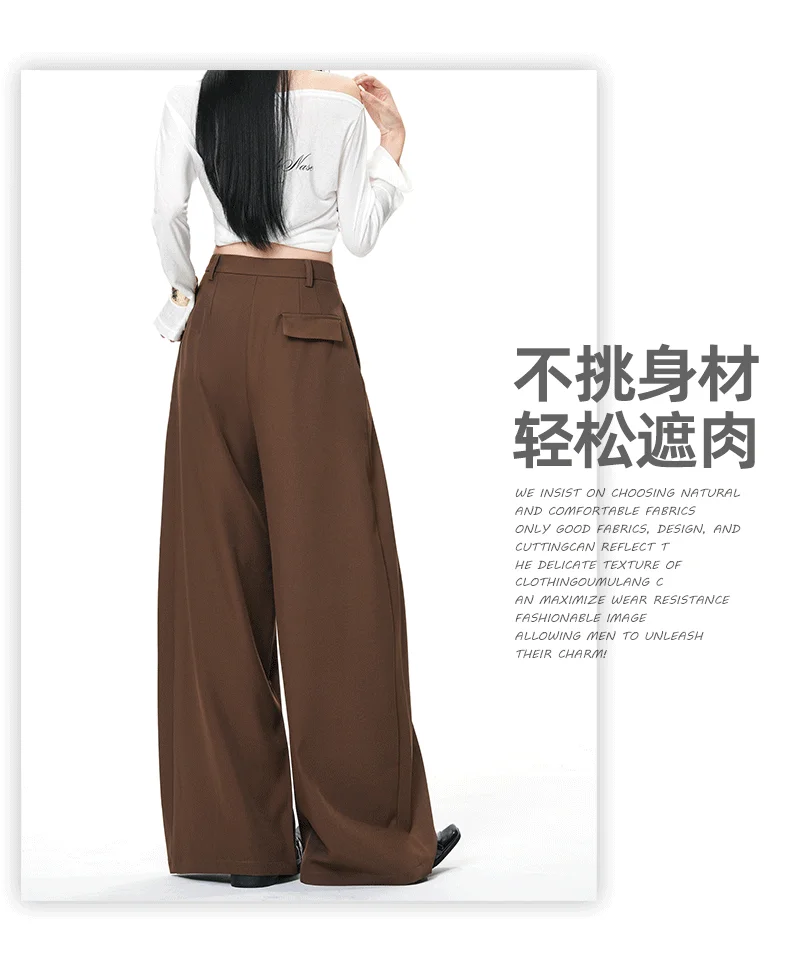 Women's Elegant Jacquard Pleating Wide-Leg Pants Office/Commuting Solid Color Loose Casual Suit Pants