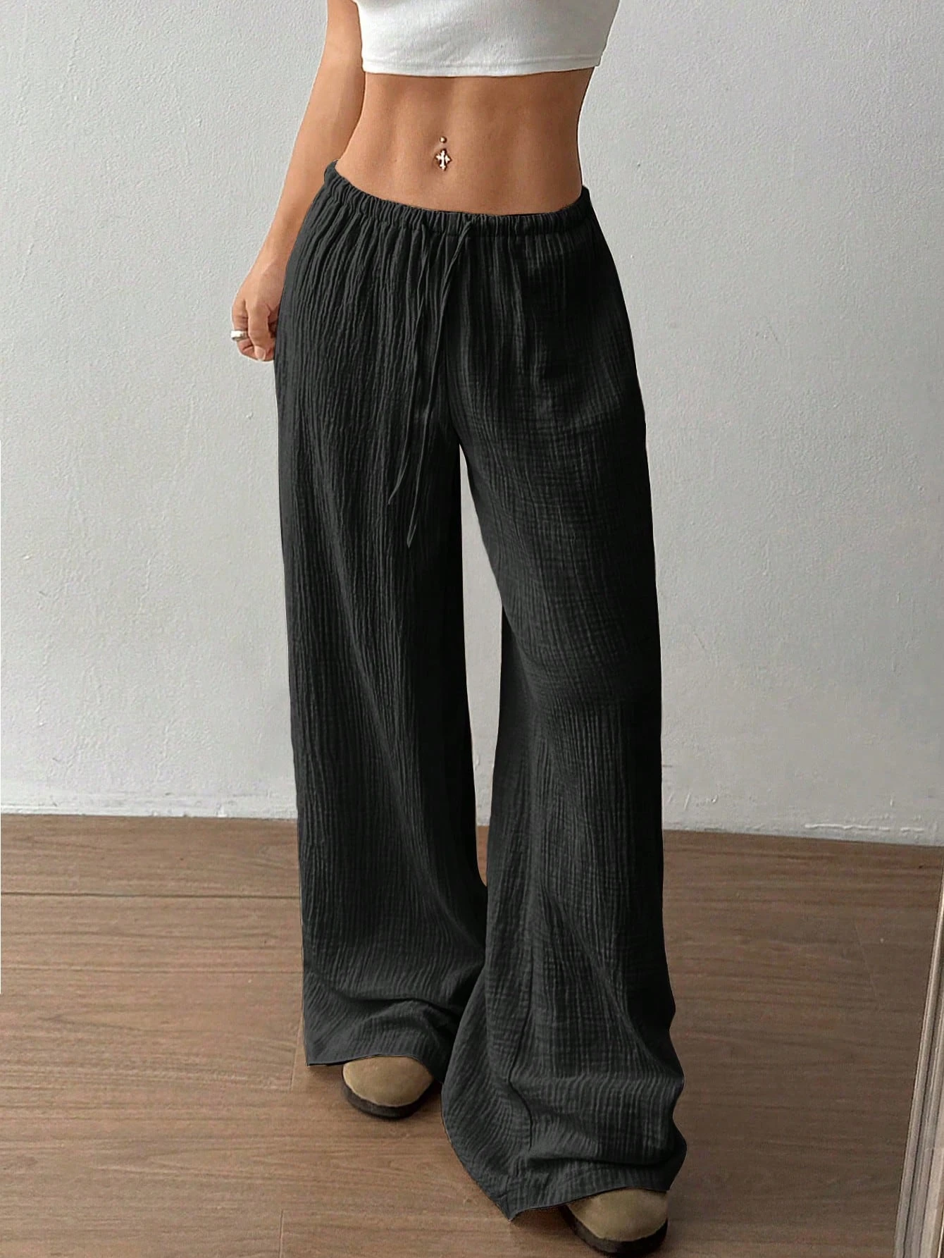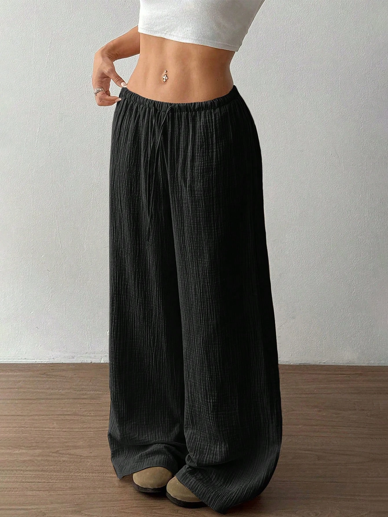 Women's Solid Color Casual Loose Drawstring Straight Long Pants Y2K Elastic Waist Mopping Trousers Streetwear 2025 Autumn Winter