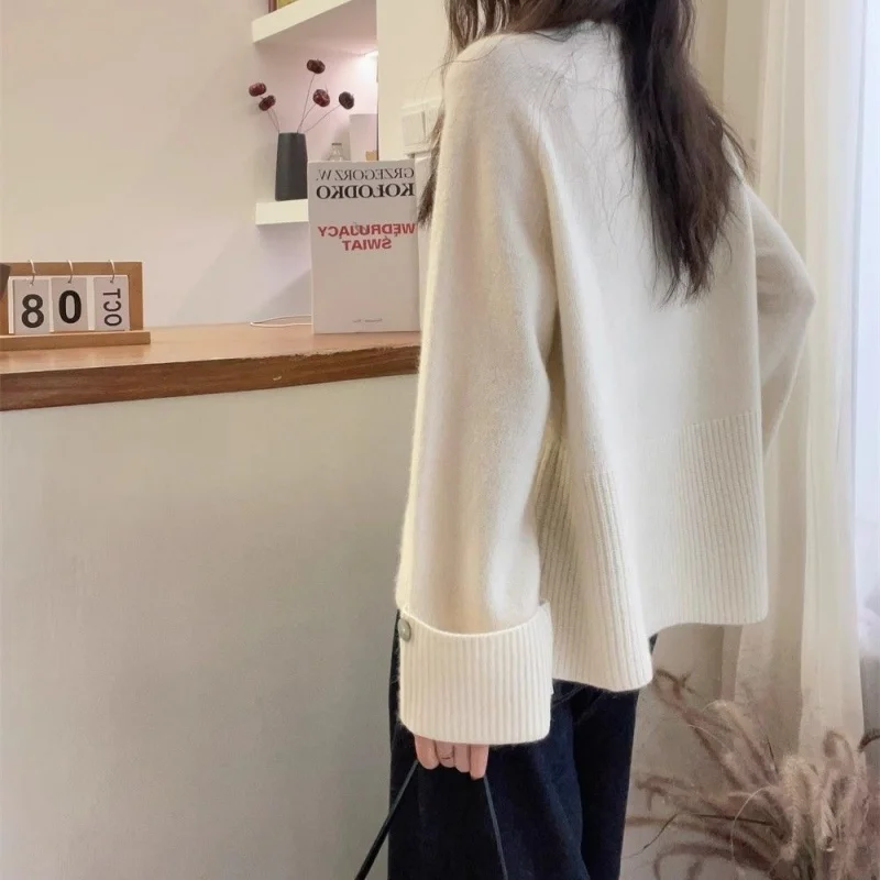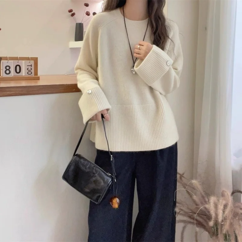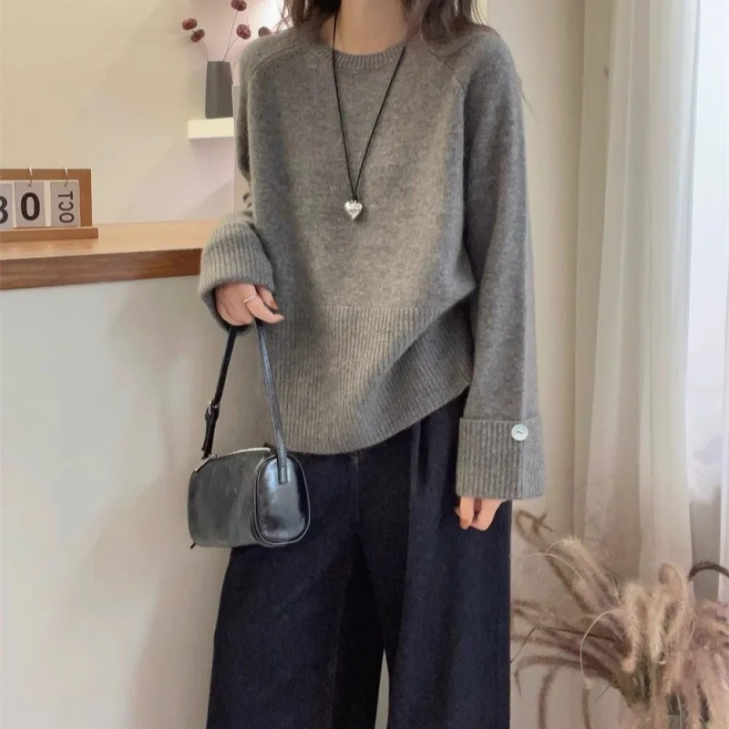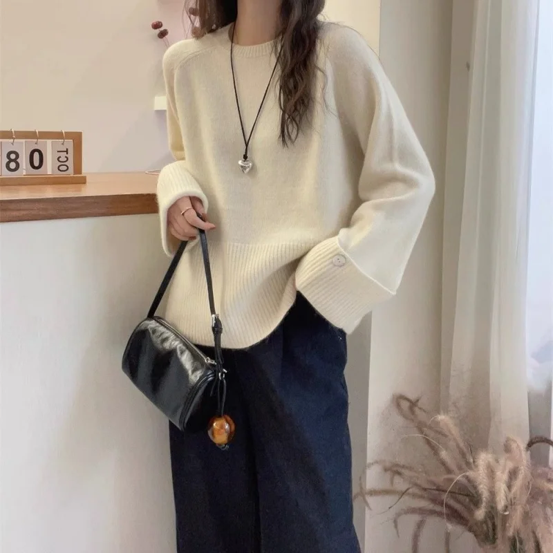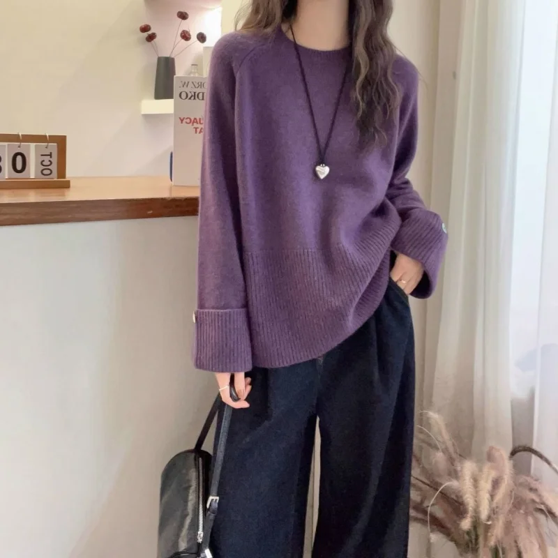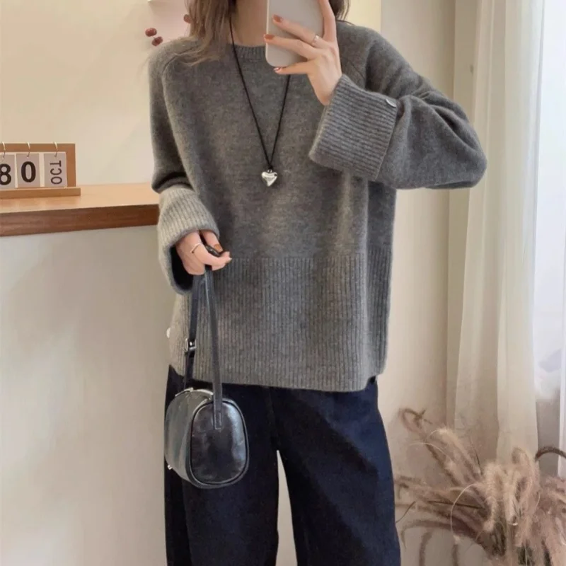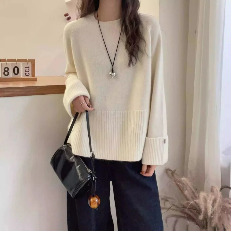 Women's Thick Round-Neck Sweater Autumn Winter Soft and Cosy, Relaxed Style Inner Layer Base Layer Knitted Top Warm