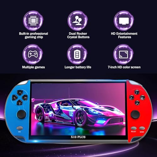 X12 Plus Retro Video Game Console 16G, Portable Handheld Emulator Gaming Console with Built-in 10000+ Retro Games 10 Emulators, 7-inch HD Screen, 800x480 Resolution, 3D Game Joystick for Best Gift