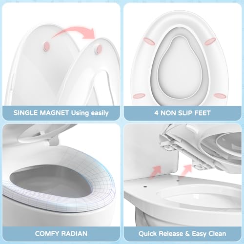 ⭐【No Slamming & Ceramic Texture】YASFEL soft close elongated toilet seat protect sleeper from noise & users pinched fingers. Made of high-performance solid PP material with ceramic texture--- Resists fracture, wear and stains?【Ergonomics Design】Both the adult and child toilet seats are ergonomic designed. Comfortable toilet bowl seat improve sedentary comfort. Designed with integrated bumpers on the back of the toilet seat, no shift and slide⭐【3 Steps Easy Installation】 Manual and installation video are provided. This is a America universal standard elongated toilet seat.18.5" length.⭐【Built in Child Dedicated Toilet Seat】Single Magnet designed for child toilet seat make child to pull down easily and improve children's independence on potty using~??【yasfelserviceteam at 163】Lifetime quality assurance, accidents are inevitable, and problems can be solved as long as you contact our YASFEL service team. Thank you for visiting YASFEL~