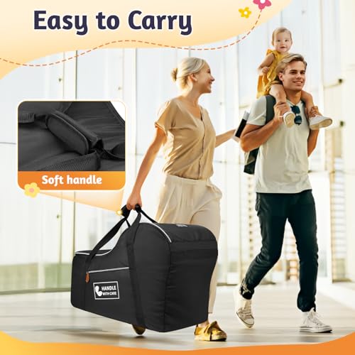 YOREPEK Car Seat Travel Bag Fits Infant Carseat with Anti-Rebound Bar Base, Padded Carseat Bags for Air Travel, Car Seat Airplane Cover with Side Pocket for Baby Essentials, Black