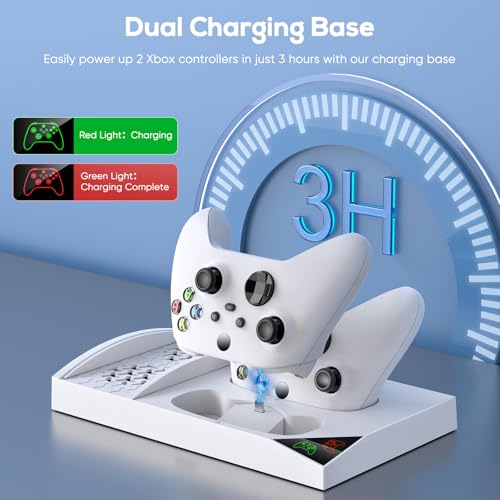 YUANHOT Vertical Cooling Stand Charging Station for Xbox Series S Console and Controller, Dual Fan Cooling System for Xbox Series S Accessories with 2Pack 1400mAh Rechargeable Battery, Headset Holder