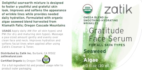 Gentle facial cream cleanser removes impurities for vital and healthy skin.Delightful sea+earth mixture is designed to foster a grateful and youthful skin. Improves and softens the appearance of wrinkle lines while provides needed daily hydration.Apply daily AM (for all skin types) and PM (for dry and maturing skin types). Massage a pea-sized amount gently and evenly over clean face and neck. Improves hydration and softens facial lines when applied after using Zatik’s Clenaser & Toner.Formulated with: blend of organic herbs, essential fatty acids from raw flower and vegetable seed oils, phytosterols, and oligosaccharide (marine algae & seaweed). Phytonutrient-rich and tannin-rich properties help hydrate and smooth wrinkles and facial lines.Handmade in small batches in California, USA.